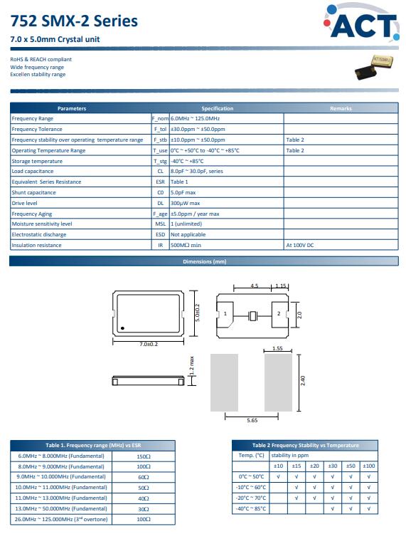 更多>>英國艾西迪晶振,752 SMX-2晶振,7050二腳晶振