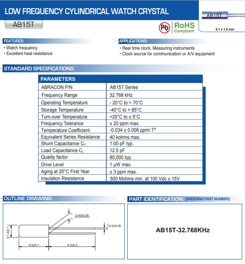 更多>>艾博康晶振,AB15T系列型號晶振,32.768KHZ晶振