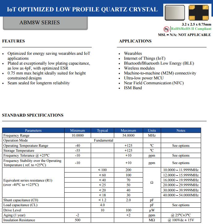 什么使IoT打勾? Abracon的低等效串聯(lián)電阻(ESR)和低負載電鍍電容(CL)晶體是綠色和節(jié)能MCU和便攜式通信的理想選擇芯片組。 在降低功耗的競爭中,許多片上振蕩器正在被匱乏輸出驅動,通常不能使用標準晶體維持振蕩。 Abracon的最新系列用于微功率應用的石英晶體振蕩器克服了這些挑戰(zhàn)。