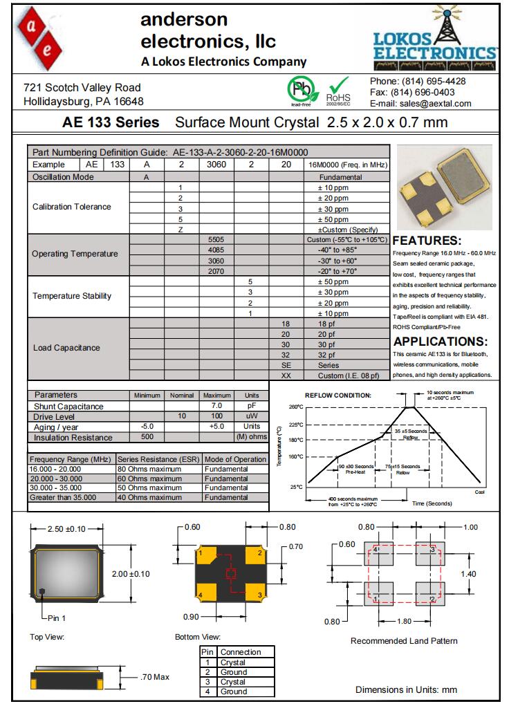 安德森晶振|AE-133-A-2-3060-2-30-16M0000|6G通信設備晶振規(guī)格表