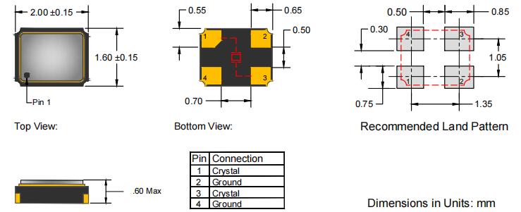 Anderson晶振|AE-138-A-2-5505-3-32-16M0000|2016超小型晶振尺寸圖