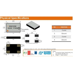 進口Bliley晶振,BQCSC系列晶振,BQCSC-24.000M-FDBBAT晶振小型表面貼片晶振型,是標準的石英晶體振蕩器,適用于寬溫范圍的電子數(shù)碼產(chǎn)品,家電電器及MP3,MP4,播放器,單片機等領域.可對應8.000MHz以上的頻率,在電子數(shù)碼產(chǎn)品,以及家電相關電器領域里面發(fā)揮優(yōu)良的電氣特性,滿足無鉛焊接的回流溫度曲線要求.