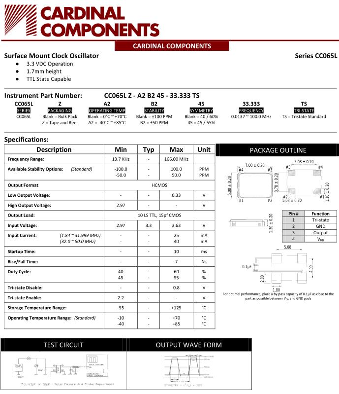 美國Cardinal晶振,CC065L有源晶振,CC065LZ-A2B245-24.000TS晶振