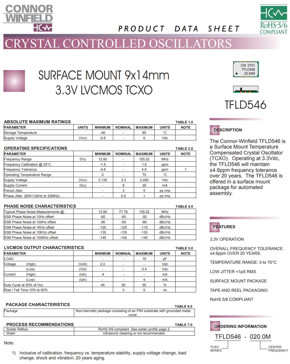 康納溫菲爾德晶振,TX101晶振,TCXO晶振