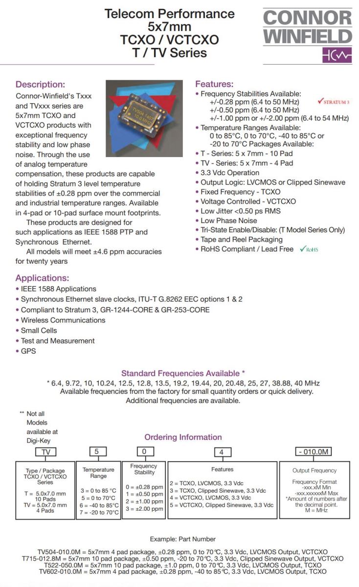 康納溫菲爾德晶振,TX176晶振,TCXO晶振