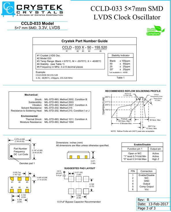 Crystek瑞斯克晶振,CCPD-024有源振蕩器,CCPD-024X-25-170.000晶振
