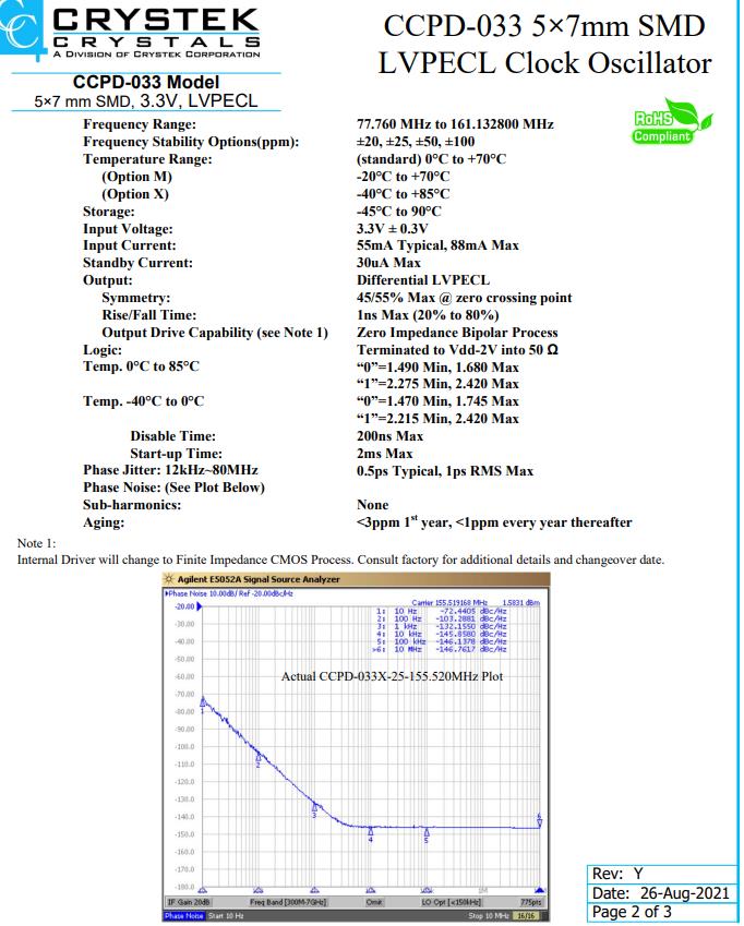 Crystek有源晶體,CCPD-033振蕩器,CCPD-033X-25-150.000晶振