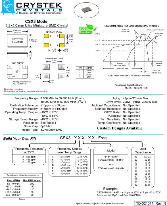 CSX3無源環保晶體,Crystek美國晶振,CSX3-AB1-18-16.000諧振器