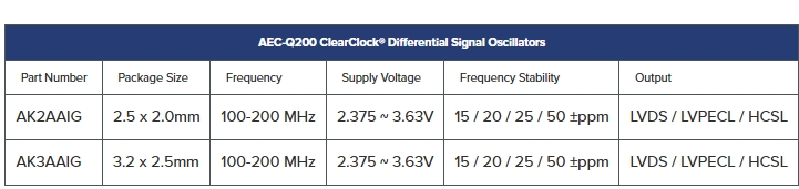 AEC-Q200 ClearClock? 差分信號振蕩器:適用于高性能應用的精密定時