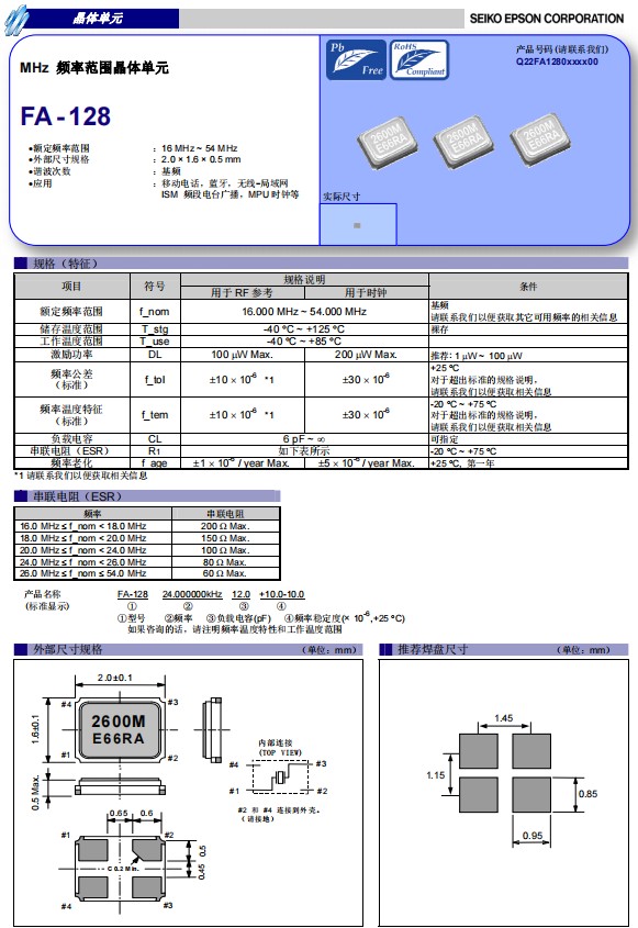日本愛普生晶振FA-128,小體積尺寸2.0x1.6mm無源晶振,石英晶體諧振器,具有超小型,輕薄型,耐熱及耐環(huán)境特性,特別適用于有小型化要求的市場(chǎng)領(lǐng)域應(yīng)用,比如智能手機(jī),無線藍(lán)牙,平板電腦,等電子數(shù)碼產(chǎn)品。