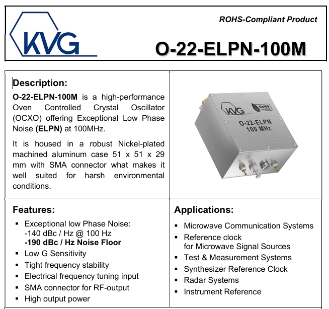 O-22 ELPN VHF:具有最佳相位噪聲的 100MHz OCXO