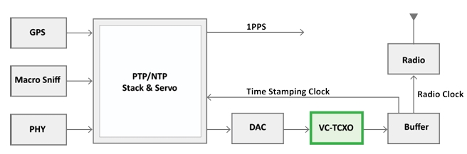當(dāng)使用 GPS 或 GNSS 計時技術(shù)時,與網(wǎng)絡(luò) PLL 標(biāo)準(zhǔn)相比,PLL 循環(huán)可以很寬,環(huán)路帶寬為 10Hz 或更高。商用 GPS 模塊提供數(shù)十納秒 (ns) 的相位對準(zhǔn)精度,TCXO (100 – 500ppb) 作為源定時參考。使用網(wǎng)絡(luò)偵聽 (Macro Sniff) 技術(shù)應(yīng)該可以獲得類似的結(jié)果。基于 Packet 的 timing 技術(shù)更具不確定性,性能取決于許多因素。