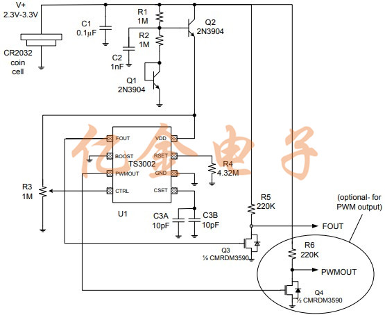 TS3001/TS3002等低功耗,低電壓CMOS晶體振蕩器的額定工作電壓為1V,消耗的電源電流低至1µA.TS3001/TS3002有源晶振的工作VDD電壓范圍為0.9V–1.8V,在較高電源電壓下運行的系統(tǒng)也可以利用以下低電源電流:該微功耗振蕩器,通過向工作電路中添加一些廉價的晶體管來實現(xiàn).