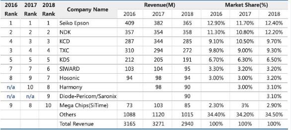 巨頭NDK公司有源業務在18及19財年連續下滑,KDS業務收入也進入負增長階段.部分小廠商關閉生產線進行整合,實力較強的龍頭企業則專注高附加值產品,市場集中度進一步提升.例如,以京瓷為代表的部分日系晶振廠甚至剝離2520、2016尺寸溫補晶振產線,轉而主攻毛利率更高的1612尺寸產品.