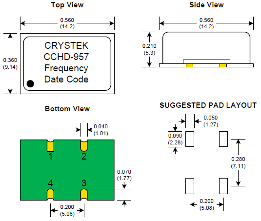 | C3290-4.000 | Crystek晶振 | C3290 | XO | 4MHz | HCMOS,TTL | 5V | ±100ppm |