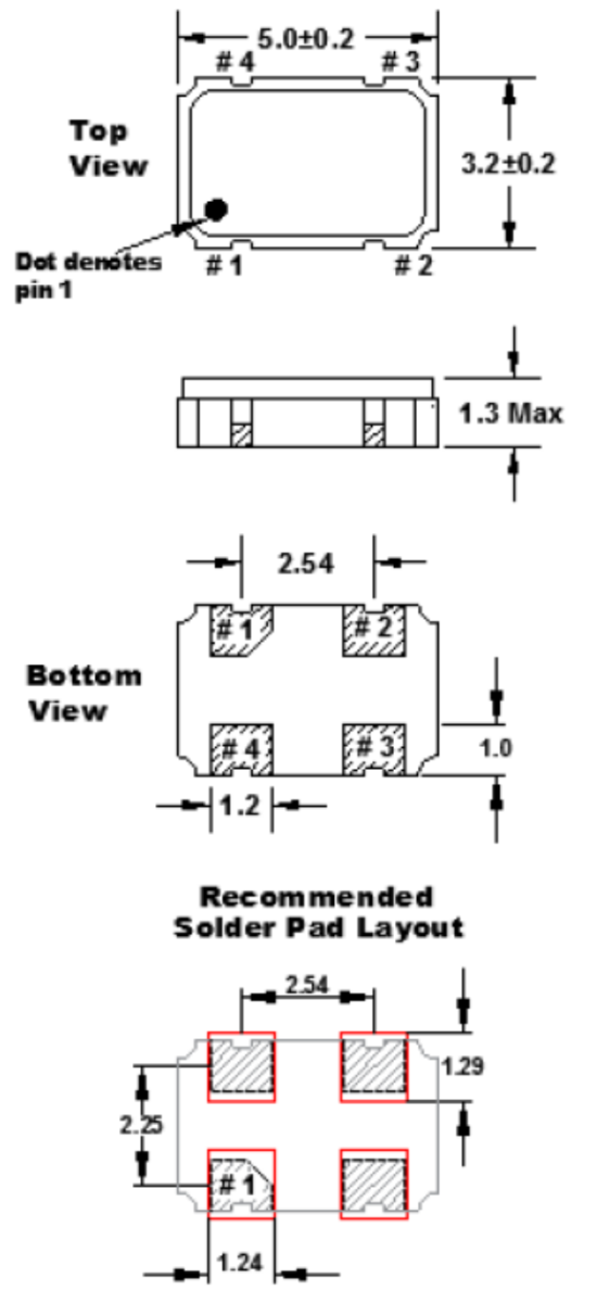 | Size/Dimension尺寸 | 5032mm晶振 | 最小包裝數MPQ: | 1000 |