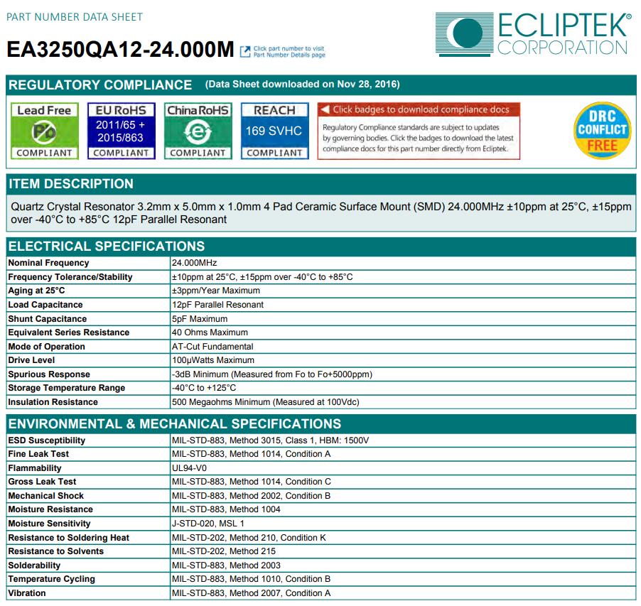 Ecliptek日蝕晶振公司成立于1987年,是一家石英晶振晶體,貼片晶振頻率元件控制市場上公認的領導者.日蝕晶振公司擁有先進的產品和領先的技術使我們能夠為客戶提供最好的石英晶體,貼片晶振,石英水晶和有源晶振,石英晶體振蕩器,貼片振蕩器產品.日蝕晶振,EA3250QA12-24.000M晶振,3225小體積晶振