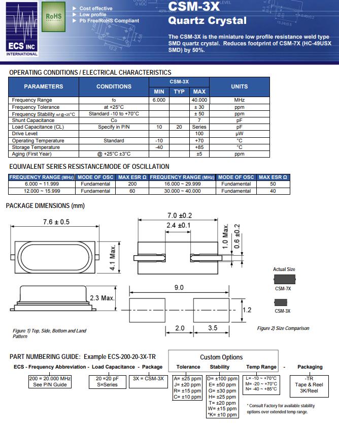 | ECS-200-CDX-0914 | CSM-3X | MHz Crystal | 20MHz | ±30ppm | ±10ppm | 10pF |
