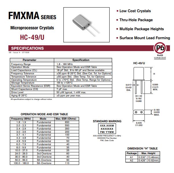 FMI晶振,HC-49/U晶振,二腳晶體諧振器