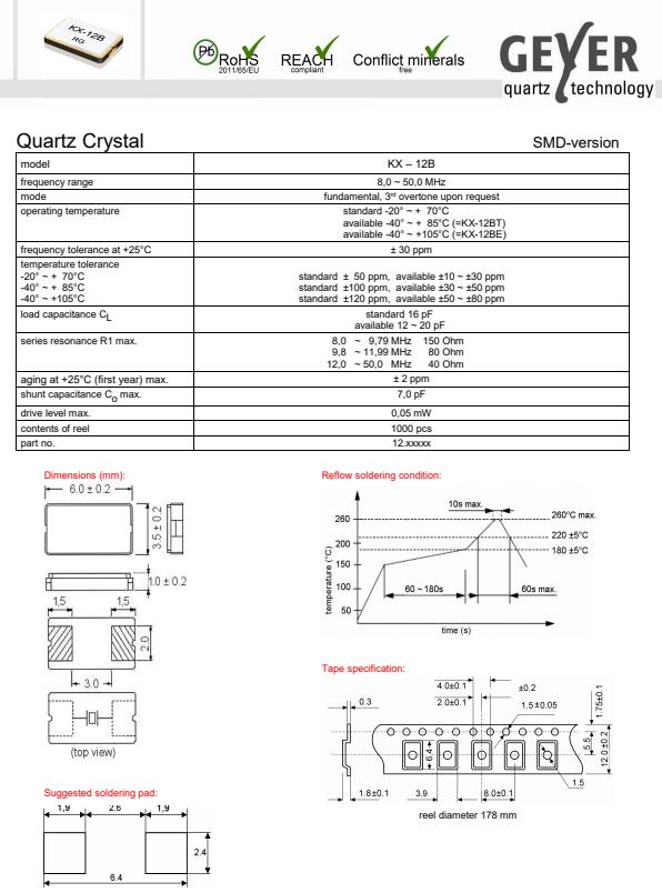 格耶德國晶振,KX-12B無源諧振器,6035mm兩腳晶振,貼片晶振本身體積小,超薄型石英晶體振蕩器,特別適用于有目前高速發(fā)展的高端電子數(shù)碼產(chǎn)品,因?yàn)?strong>貼片晶振本身小型化需求的市場領(lǐng)域,小型,薄型是對應(yīng)陶瓷振蕩器(偏差大)和普通的石英晶體振蕩器(偏差小)的中間領(lǐng)域的一種性價(jià)比較出色的產(chǎn)品.產(chǎn)品廣泛用于筆記本電腦,無線電話,衛(wèi)星導(dǎo)航SSD,USB,Blu-ray等用途,符合無鉛焊接的高溫回流焊曲線特性.