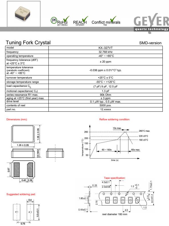 更多>>德國格耶晶振,KX-327VT無源晶體,超小型晶振