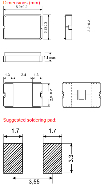 standard ± 50 ppm available ± 10 ~ ± 50 ppm |