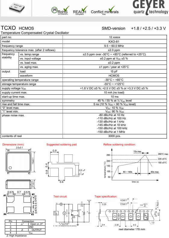 格耶進口晶振,KXO-81小尺寸晶振,溫補晶振