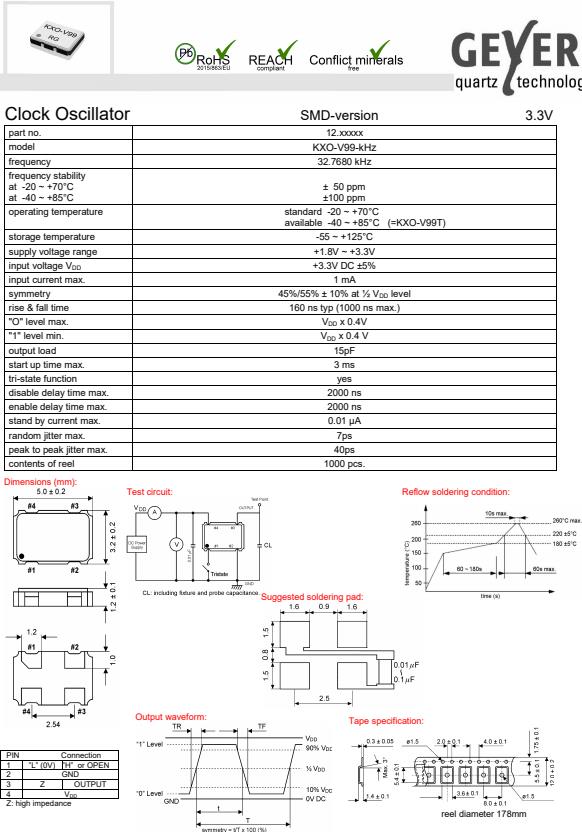GEYER格耶晶振,KXO-V99-kHz有源振蕩器,四腳貼片晶振