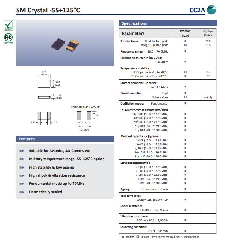 | 頻率溫度特征 | f_tem | ±50ppm over -40 to +85°C ±100ppm over -55 to +125°C | 超出標(biāo)準(zhǔn)的規(guī)格請(qǐng)聯(lián)系我們. | |