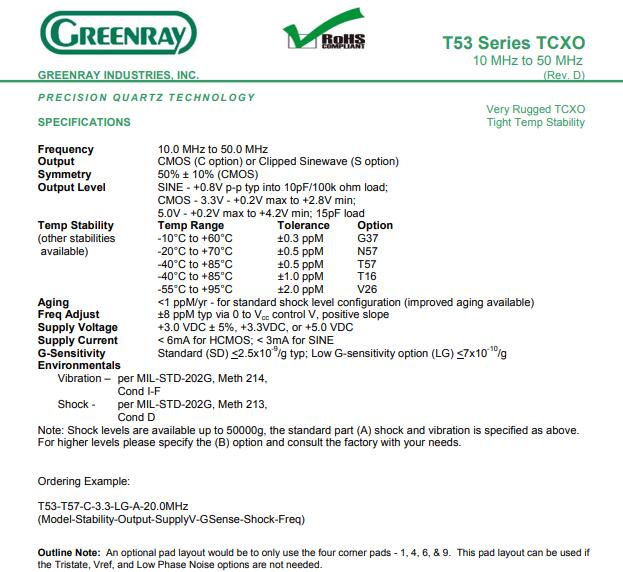 GREENRAY晶振,T53系列晶振,5032溫補晶振