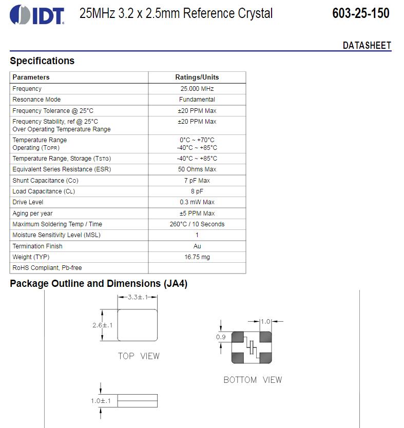 更多>>IDT晶振,603-25-150JA4I8晶振,3225無(wú)源晶振
