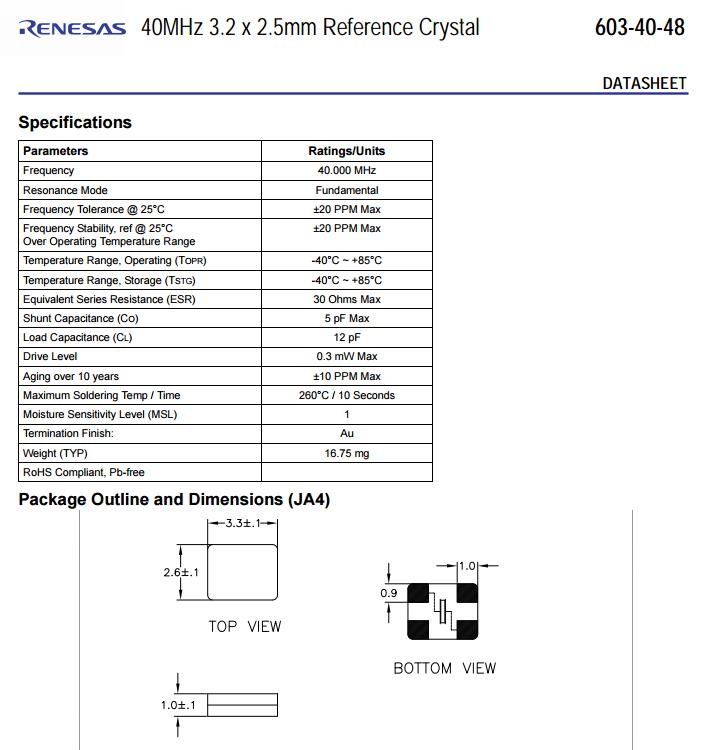 更多>>IDT晶振,603-40-48JA4I晶振,40M四腳晶振