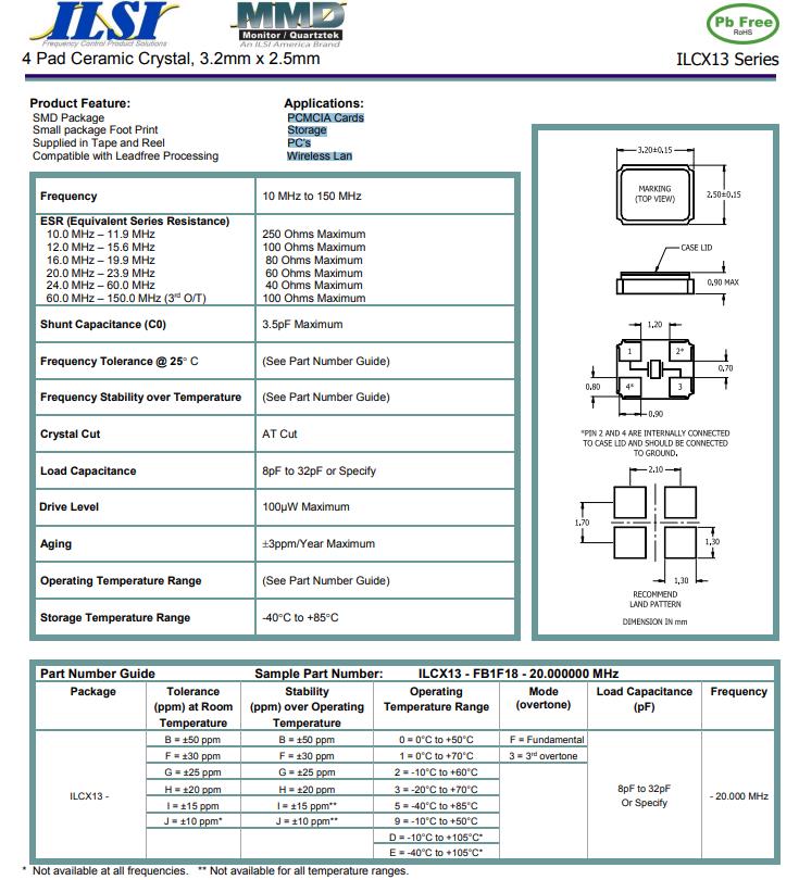 | ILCX13-HB3F18- 32.000 MHz | ILSI | ILCX13 | -20°C ~ 70°C | 32 MHz | ±20ppm | 18 pF |
