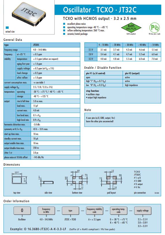 | 型號 | JT32C晶振 (TCXO) | |