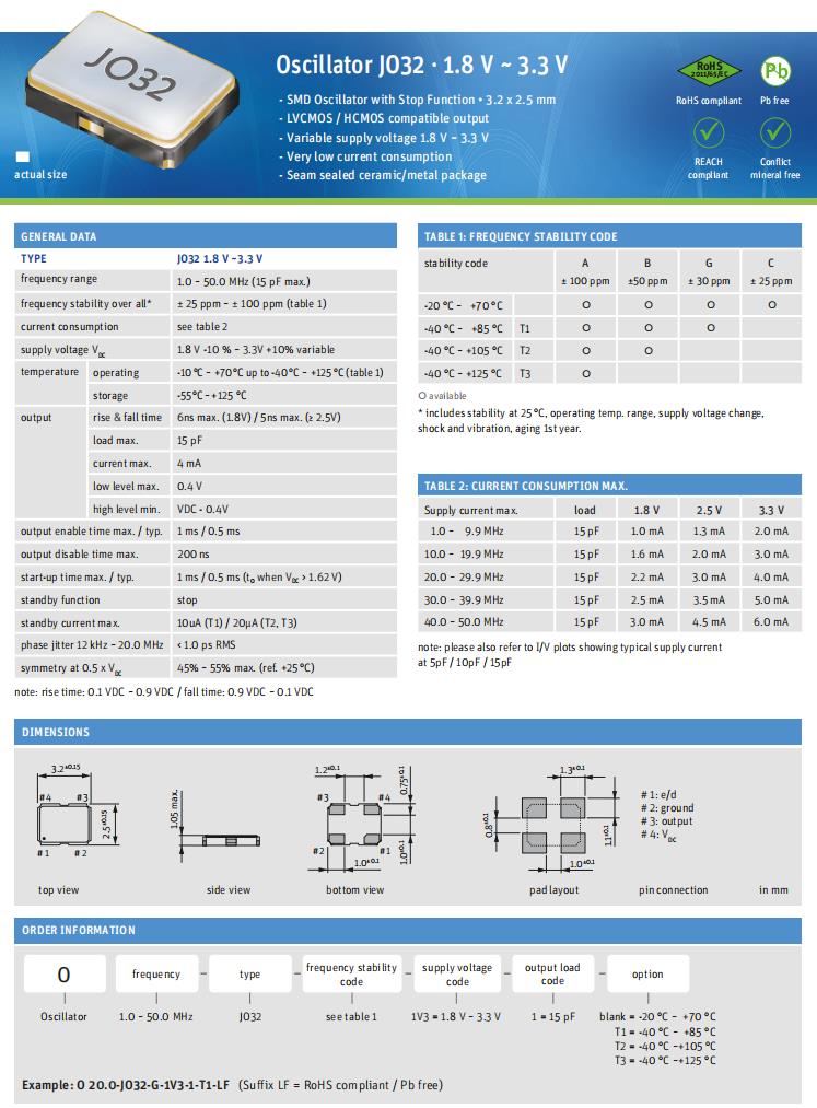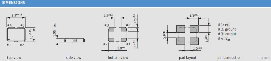 -SMD振蕩器與停止功能•3.2 x 2.5 mm