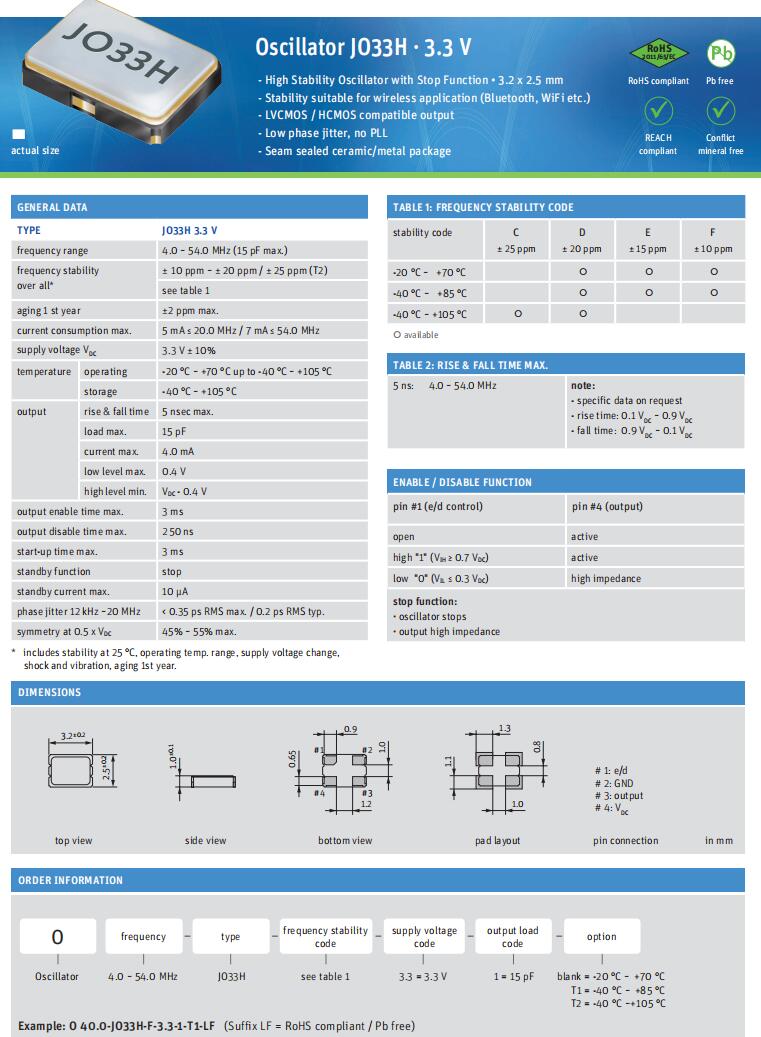 O 18.0-JO33H-D-3.3-1-T2-LF,Jauch歐美品牌,6G無線模塊晶振規格表
