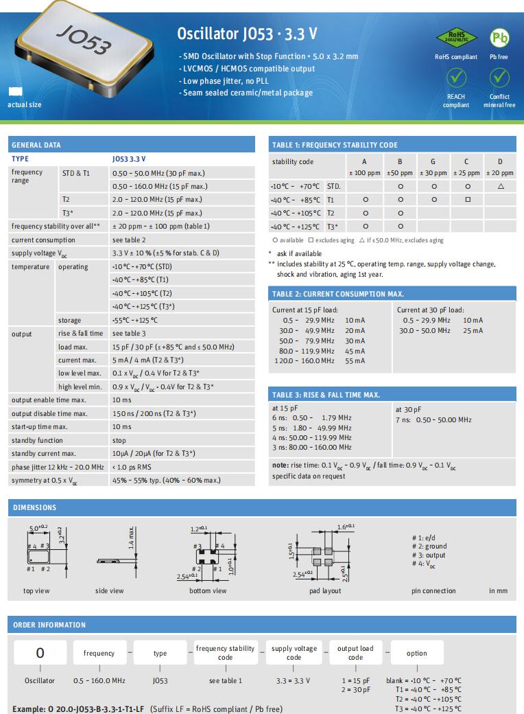 - SMD振蕩器與停止功能•5.0 x 3.2 mm