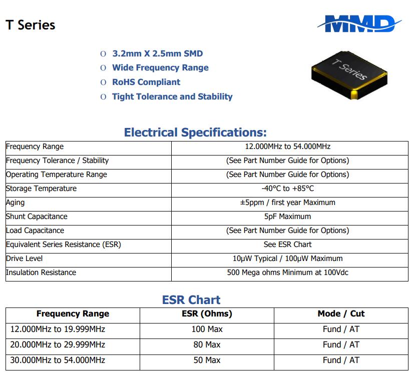 Mmdcomp晶振,T12BC1-19.200MHZ-T,6G無線模塊晶振規格表