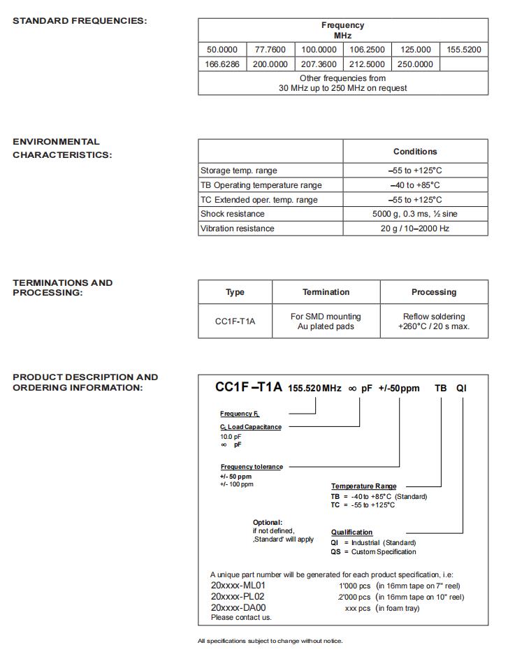 CC1F-T1A-106.250MHz-10.0pF-50ppm-TB-QI|耐高溫晶振|6G通信晶振規格表