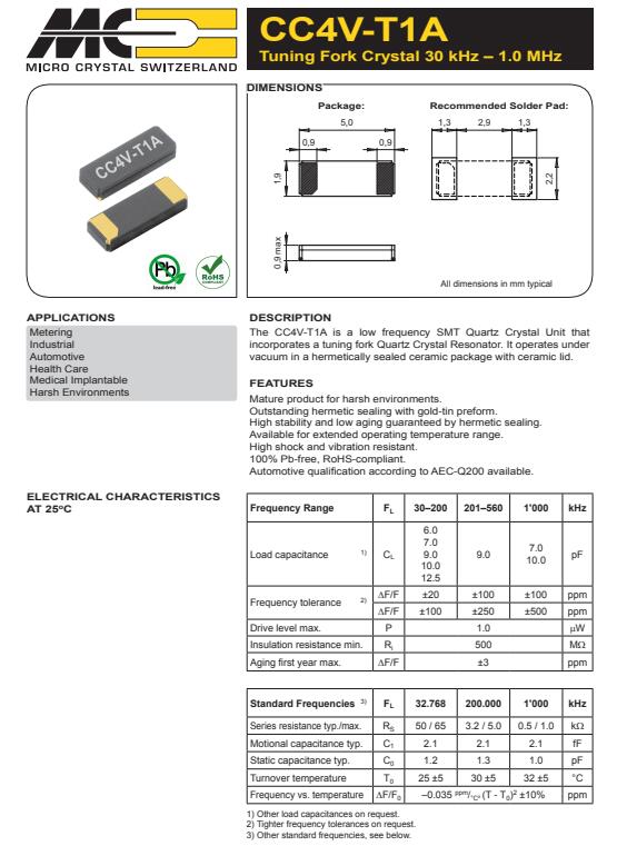 | CC1V-T1A-32.768kHz-9pF-30PPM-TC-QC | Micro Crystal | 晶體 32.768 kHz 9.0 pF +/-30 PPM -55/+125C |