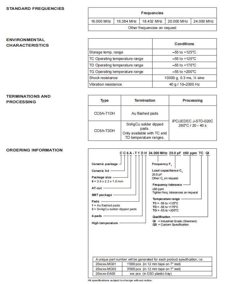 CC6A-T1DH-24.000MHz-20.0pF-50ppm-TC-QI|6G無線電通信晶振|耐高溫晶振規格表