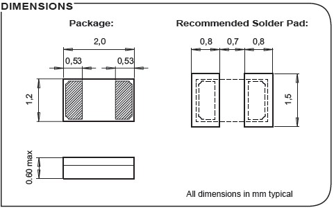 CC8V-T1A-32.768kHz-12.5pF-20ppm-TB-QM,2012mm音叉晶體,醫療設備專用晶振尺寸圖