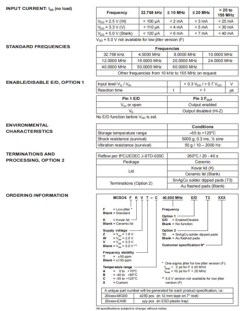 MCSO6FKVT–C-40.000MHz-E/D,6G無線網絡晶振,3522mm貼片晶振,瑞士微晶晶振,MCSO6有源晶振,MCSO6FKVT–C-40.000MHz-E/D晶振,3522mm貼片晶振,石英晶體振蕩器,頻率40MHz,電壓3.3V,頻率穩定性50ppm,工作溫度-55~125°C,耐高溫晶振,抗沖擊晶振,6G無線網絡晶振,航空電子晶振,遠程控制應用晶振,測試和測量設備晶振,微處理器晶振.
