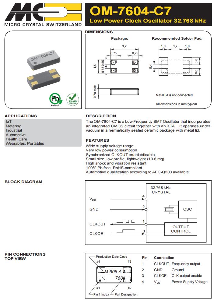 | CC4V-T1A-32.768k-9pF-20PPM-TC-QA | Micro 晶振 | 晶體 32.768 kHz 9.0 pF +/-20 PPM AEC-Q200 | Crystals |