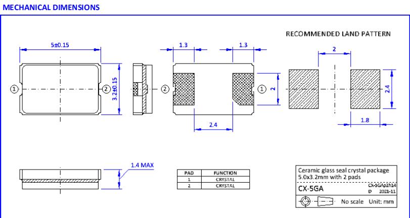 | Aging first year | Δf/y1 | ±5ppm | @+25°C |