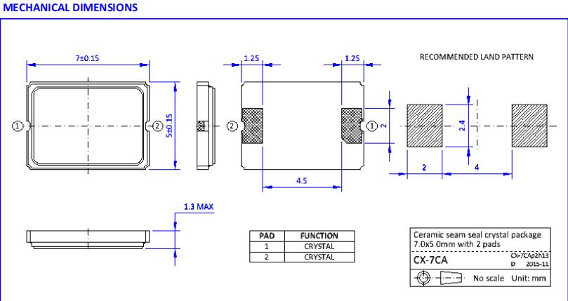 香港NKG晶振|S7CA40.000F20M23-EXT|7050無源晶振尺寸圖