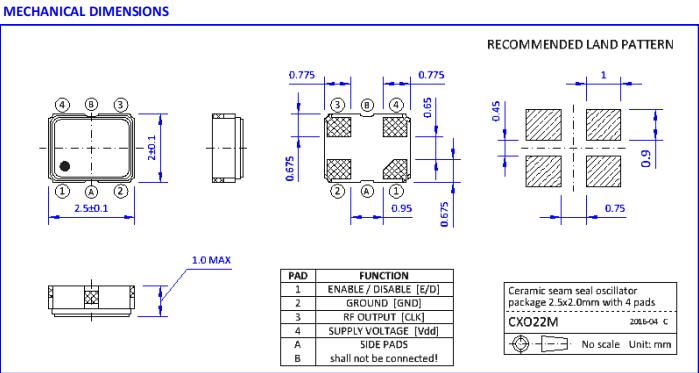 NKG晶振|SCO7-6-G-40.0000-WTS-EXT|2520mm晶振尺寸圖