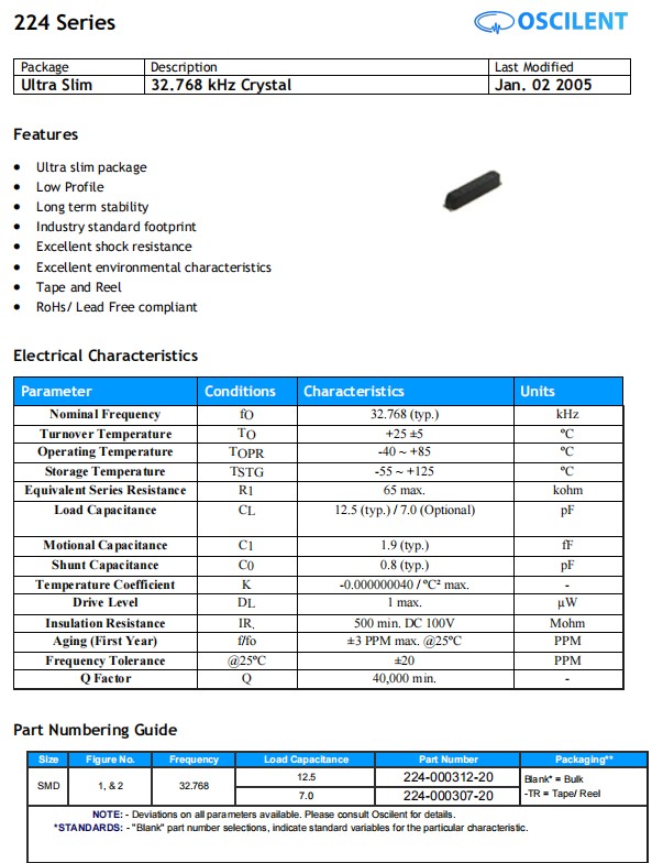 美國Oscilent晶振,224-000312-20-LF,6G光纖通道晶振,美國Oscilent晶振,224進口晶振,224-000312-20-LF晶振,32.768K貼片晶振,音叉晶振,石英晶振,負載12.5pF,頻率容差20ppm,工作溫度-40~85°C,7015mm晶振,超薄封裝晶振,耐高溫晶振,無鉛環保晶振,6G光纖通道晶振,通訊設備晶振,GPS導航晶振,數字電表晶振.