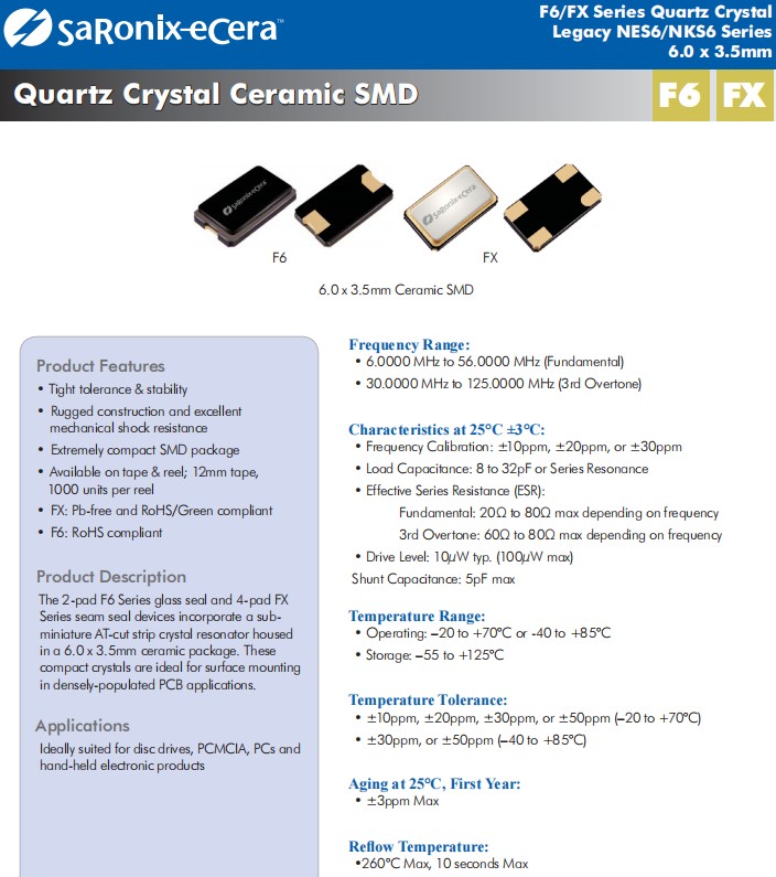 | F62400017 | Diodes晶振 | F6 | 24MHz | ±30ppm | ±30ppm | 18pF | -40°C ~ 85°C |