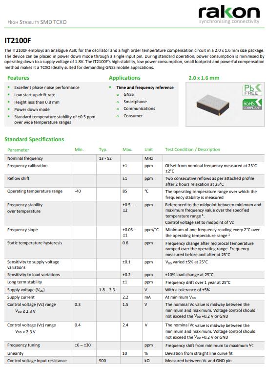 美國瑞康晶振,IT2100F晶振,2016溫補晶振